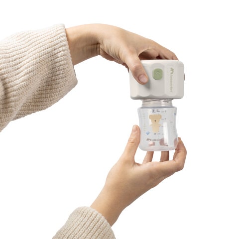 Flaskvärmaren Pocket fungerar med ett uppladdningsbart litiumbatteri och en värmeplatta. Vänd flaskvärmaren upp och ned och skruva helt enkelt fast din flaska, fylld med vatten eller bröstmjölk, direkt på den, vänd enheten tillbaka till sin bas på en plan yta och tryck på startknappen för att starta uppvärmningscykeln. Du kan värma välling eller bröstmjölk var som helst utan något eluttag.
