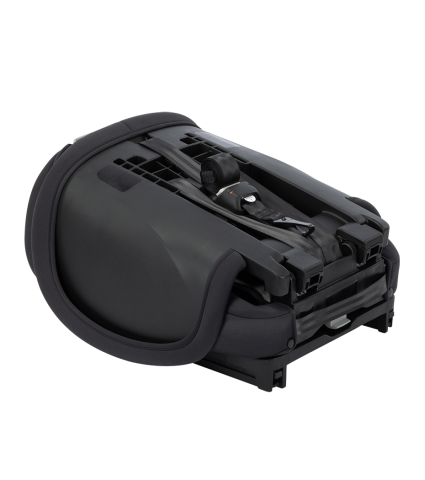 Ever & Go i-Size kan fällas ihop mycket enkelt. Tryck helt enkelt på knappen på baksidan samtidigt som du skjuter bilbarnstolen framåt.