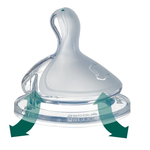 Varje napp har luftventiler som reglerar luftintaget, vilket säkerställer en mer komfortabel matning samtidigt som det bidrar till att minska gaser, uppstötningar och kolik.
