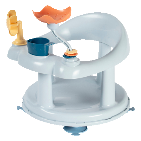 Med en färgglad design och fyra bedårande leksaker hålls ditt barn alltid engagerat och underhållet under badstunden med den lekfulla roterande badstolen. De kan ösa vatten med fiskmuggen och sjöstjärnesilen, och plaska med solvattenhjulet och snäckringarna. Stolen är dessutom utformad för ditt barns komfort, med ett stödjande ergonomiskt ryggstöd och en halksäker sittdel.